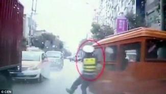Το χάρο με τα μάτια του έζησε ένας τροχονόμος στην Κίνα όταν προσπάθησε να σταματήσει ένα μικρό φορτηγάκι για έλεγχο.