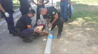 Στο σημείο βρέθηκαν άμεσα τρεις αστυνομικοί της ομάδας «Ζ», ένας αστυνομικός της Τροχαίας και το πλήρωμα ενός περιπολικού. Ο ένας από τους αστυνομικούς της ομάδας «Ζ» παρείχε πρώτες βοήθειες στο θύμα, το οποίο είχε τομή περίπου είκοσι εκατοστών από το στήθος μέχρι τον αφαλό.