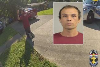 Στις εικόνες φαίνεται ένας αστυνομικούς του Λούισβιλ να φτάνει σε ένα σπίτι, όπου ένα αυτοκίνητο είναι παρκαρισμένο, την περασμένη Παρασκευή.