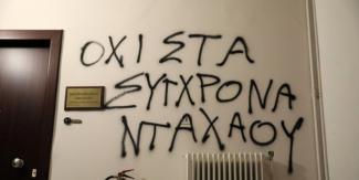 Όπως έγινε γνωστό από την Αστυνομία, η ομάδα μπήκε στην πολυκατοικία, ανέβηκε στον όροφο που βρίσκεται το γραφείο του κ. Μηταράκη και έγραψε με σπρέι στον τοίχο του διαδρόμου το σύνθημα «Όχι στα σύγχρονα Νταχάου».