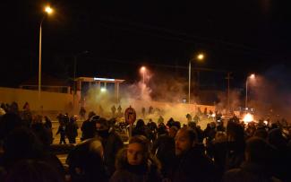 Κάποια στιγμή, σύμφωνα με τις ίδιες πηγές, ομάδα ατόμων που έκανε επιθέσεις προς τις αστυνομικές δυνάμεις αποπειράθηκε να εισβάλει στο στρατόπεδο. Μάλιστα, έσπασαν μία από τις εισόδους του στρατοπέδου και περίπου 10 άτομα εισέβαλαν στον προαύλιο χώρο, παρουσία λιγοστών στρατιωτικών και στρατιωτών αλλά και αστυνομικών.