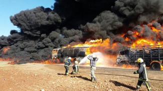 Μετά τις καταγγελίες της Ρωσίας ότι η Τουρκία συναλλάσσεται παράνομα με τους τζιχαντιστές του Ισλαμικού Κράτους για να αγοράζει πετρέλαιο από εδάφη που τελούν υπό τον έλεγχό τους, βίντεο δόθηκε στη δημοσιότητα που δείχνει κομβόι φορτηγών να τυλίγεται στις φλόγες.