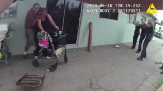 Το περιστατικό που συνέβη στις 16 Ιουνίου καταγράφηκε καρέ-καρέ από τις κάμερες που φορούσαν στις στολές τους οι αστυνομικοί, και το βίντεο δόθηκε στη δημοσιότητα από το ίδιο το αστυνομικό τμήμα της περιοχής εχτές.