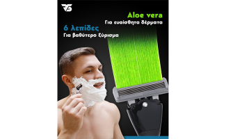 Έξι λεπίδες στο μπροστινό μέρος και μια στο πίσω μέρος (τριμερ για τις δύσκολες περιοχές όπως κάτω από την μύτη).