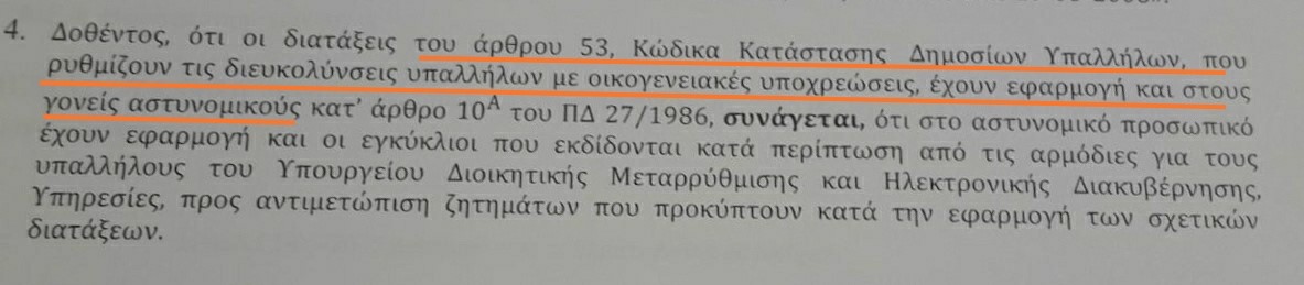 *Με νομοθετική ρύθμιση οι αστυνομικοί μπορούν να λάβουν την άδεια ανατροφής μέχρι να φτάσουν τα τέκνα την ηλικία των έξι (6) ετών