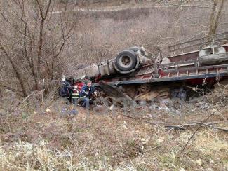 Το περιστατικό σημειώθηκε στις 10:30 περίπου το πρωί της Παρασκευής στο 13ο χλμ της παλιάς Εθνικής Οδού Βέροιας – Κοζάνης στις τελευταίες κατηφόρες της Καστανιάς με κατεύθυνση προς Βέροια. Νταλίκα με βουλγάρικες πινακίδες φορτωμένη με εμφιαλωμένα νερά ξέφυγε από την πορεία της, έπεσε πάνω στο προστατευτικό στηθαίο του δρόμου και στη συνέχεια κατέληξε στο βάθος του γκρεμού ενώ είχε ανατραπεί.