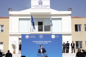 Στην Υποδιεύθυνση Ασφαλείας Δυτικής Αττικής βρέθηκε ο πρωθυπουργός Αλέξης Τσίπρας για τα εγκαίνια του νέου κτιρίου και την τελετή παράδοσης οκτώ αστυνομικών οχημάτων.