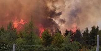 Σύμφωνα με πληροφορίες, ξεκίνησε σε ξερά χόρτα δίπλα από τον αυτοκινητόδρομο και πήρε διαστάσεις λόγω των ισχυρών ανέμων που πνέουν στην περιοχή.