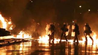 Στην μία περίπτωση, οι νεαροί κινήθηκαν στα στενά της περιοχής και έφθασαν μέχρι τα γραφεία του ΠΑΣΟΚ, επί της Χαριλάου Τρικούπη. Στη θέα της διμοιρίας των ΜΑΤ, που βρίσκεται έξω από τα γραφεία οι νεαροί έριξαν "βροχή" από βόμβες μολότοφ και τράπηκαν σε φυγή.