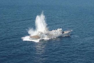 H φωτογραφία είναι από βολή τορπίλης τουρκικού υποβρυχίου στη Μαύρη Θάλασσα. Στόχος ένα παλαιό αμερικανικό πλοί το USS Duncan. Όπως αναφέρουν οι πληροφορίες το τουρκικό ναυτικό χρησιμοποίησε μια νέα τροπίλη.