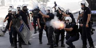 Με προειδοποιητικά πυρά στον αέρα η τουρκική αστυνομία προσπάθησε να διαλύσει μια ομάδα εξοργισμένων διαδηλωτών οι οποίοι επιχειρούσαν να φτάσουν στην περιοχή του σιδηροδρομικού σταθμού όπου νωρίτερα σήμερα σημειώθηκε μια διπλή έκρηξη με αποτέλεσμα να σκοτωθούν τουλάχιστον 30 άνθρωποι και να τραυματιστούν άλλοι 126.