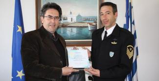 Ο Δήμαρχος Νάξου και Μικρών Κυκλάδων Μανόλης Μαργαρίτης, παρουσία του Λιμενάρχη Αλέξιου Αποστολόπουλου και του Επάρχου Νάξου Γιάννη Μαργαρίτη, τίμησε τον Αρχικελευστή του Λιμενικού Σώματος Άγγελο Χατζηνικολάου, ο οποίος βρήκε και παρέδωσε σάκο που περιείχε χρήματα και τιμαλφή.