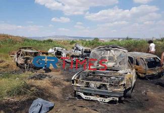 Πέντε αυτοκίνητα που κλάπηκαν χθες το βράδυ βρέθηκαν καμένα και κατεστραμμένα ολοσχερώς, σε περιοχή δίπλα από τις φυλακές Διαβατών, κοντά στον οικισμό Ρομά Αγια Σοφία.
