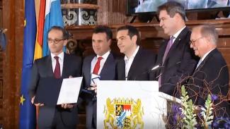 «Επέδειξαν θάρρος για να λύσουν με καλό τρόπο και στην Ελλάδα και στη Βόρεια Μακεδονία ένα σημαντικό πρόβλημα και σας συγχαίρω γι αυτή την επιτυχία», είπε ο Πρωθυπουργός της Βαυαρίας.
