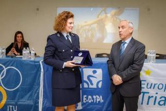 Η Ελληνική Ομοσπονδία Τριάθλου στο πλαίσιο της εκδήλωσης "Γιορτή του Τριάθλου" βράβευσε τη Διοικητή του Αστυνομικού Τμήματος Λουτρακίου, Αστυνόμο Β΄ Μυστακίδου Μάρθα.