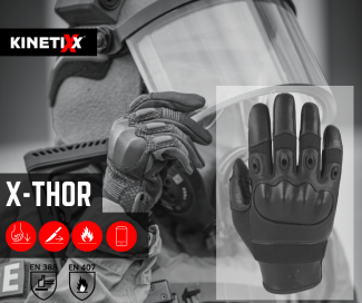 Τα γάντια αστυνομίας - στρατού X-THOR ανήκουν στη σειρά KinetiXx του Γερμανικού οίκου W+R Pro και χαρακτηρίζονται απο την πυρίμαχη ανθεκτικότα και τα υψηλά επίπεδα προστασίας απο κοπή και διάτρηση που προσφέρουν. Επιπρόσθετα, είναι συμβατά για χρήση με οθόνες αφής σε κινητά και τάμπλετ.