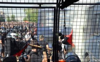 Σύμφωνα με την ανακοίνωση της ΓΑΔΑ οι φωτογραφίες έχουν τραβηχθεί μέσα από τις κλούβες των ΜΑΤ και σύμφωνα με πηγές από το υπουργείο Προστασίας του Πολίτη επιβεβαιώνουν ότι τα επεισόδια ξεκίνησαν όταν κουκουλοφόροι αποπειράθηκαν να πυρπολήσουν τα λεωφορεία της ΕΛ.ΑΣ.