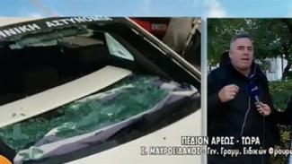 Όπως είπε, οι κουκουλοφόροι έσπασαν με βαριοπούλα τα τζάμια, ενώ ο ένας αστυνομικός βρισκόταν μέσα στο περιπολικό και ο άλλος έκοβε κλήση.