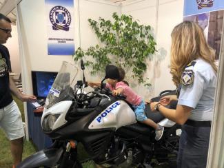 Επιπλέον, για τα παιδιά υπήρχε στο χώρο δίκυκλη μοτοσικλέτα της Ελληνικής Αστυνομίας και ξύλινη κατασκευή, η οποία θα τους έδινε την ευκαιρία να φωτογραφηθούν ως αστυνομικοί.