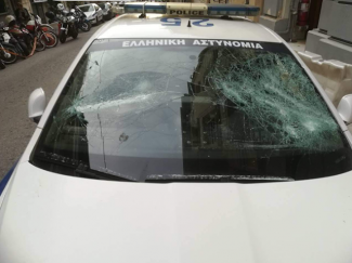 Όπως φαίνεται στις φωτογραφίες, οι επιτιθέμενοι έσπασαν τα τζάμια του περιπολικού, με εξαίρεση του μπροστινού παρ μπριζ, λόγω της ιδιαίτερης κατασκευής του.