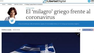 Η ιστοσελίδα Libertad Digital, δημοσιεύεται άρθρο της Cristina Losada, με τίτλο: «Τo ελληνικό “ θαύμα” στη μάχη κατά του κορονοϊού».