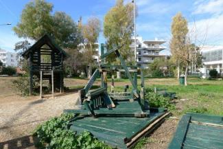 Η μικρή πίστα για τα skateboards είναι πνιγμένη από λάσπη, εναπομείναντες κάδοι ξεχειλίζουν από σκουπίδια και παγκάκια έτοιμα να καταρρεύσουν, συνθέτουν το παζλ της εγκατάλειψης.