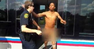 Ούτε που θα μπορούσαν να σκεφτούν οι αστυνομικοί όταν δέχτηκαν κλήση να φτάσουν στο σημείο, πως θα έβλεπαν ένα γυμνό άντρα να ψεκάζει τους περαστικούς.