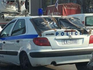 Τη φωτογραφία του περιπολικού με το σπασμένο τζάμι, και τη μαύρη σακούλα στη θέση του τράβηξε η δημοσιογράφος Κάτια Φωτιάδου.
