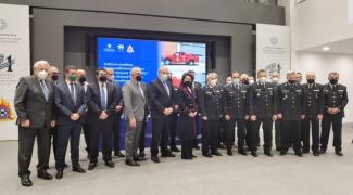 Στην τελετή παρευρέθησαν ο Υπουργός Κλιματικής Κρίσης και Πολιτικής Προστασίας, Χρήστος Στυλιανίδης, η Πρόεδρος της Επιτροπής «Ελλάδα 2021», κα Γιάννα Αγγελοπούλου-Δασκαλάκη, ο Υφυπουργός Κλιματικής Κρίσης και Πολιτικής Προστασίας, Ευάγγελος Τουρνάς, ο Αρχηγός του Πυροσβεστικού Σώματος, Αντιστράτηγος Αλέξιος Ράπανος, ο Γενικός Γραμματέας Πολιτικής Προστασίας, Βασίλειος Παπαγεωργίου, καθώς και το σύνολο της φυσικής ηγεσίας του ΠΣ.