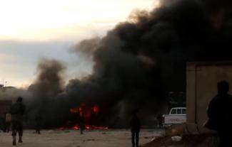 Το πρώτο βίντεο αμέσως μετά την από αέρος επίθεση που δέχθηκαν ιδιωτικής χρήσης φορτηγά στο έδαφος της Συρίας πολύ κοντά στα σύνορα με την Τουρκία.