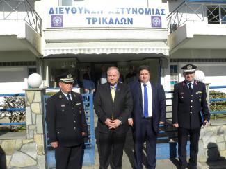 Ακολούθως μετέβη στην έδρα της Διεύθυνσης Αστυνομίας Τρικάλων, όπου τον υποδέχθηκε ο Διευθυντής της Διεύθυνσης, Αστυνομικός Διευθυντής Αθανάσιος Γραβάνης και πραγματοποίησε ομιλία στους Αξιωματικούς των Υπηρεσιών των Τρικάλων.