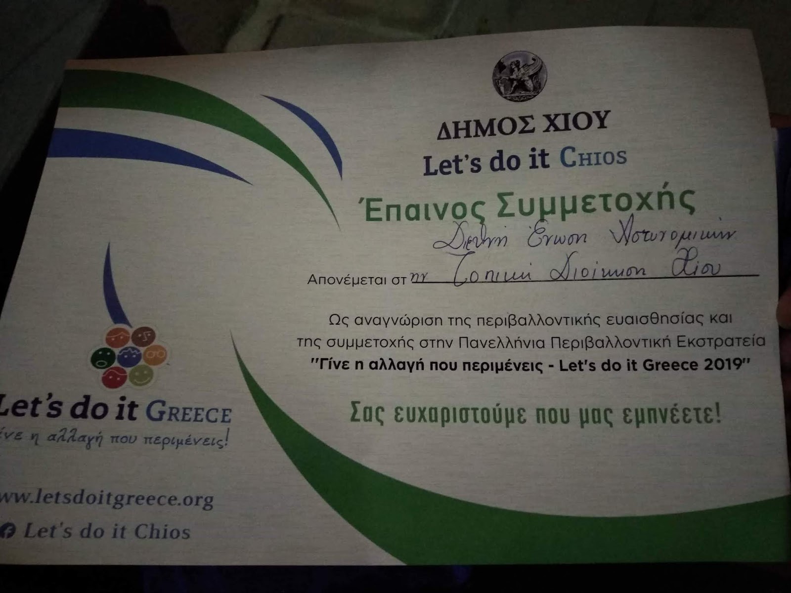 Η Διεθνής Ένωση Αστυνομικών / Τοπική Διοίκηση Χίου συμμετέχει στην πανελλήνια δράση του Let s do it GREECE.