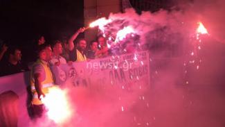 Οι διαδηλωτές πραγματοποίησαν πορεία προς το υπουργείο Μακεδονίας Θράκης, και όταν έφτασαν σε αυτό άναψαν τα καπνογόνα φωνάζοντας συνθήματα. Σύμφωνα με το ρεπορτάζ του newsit.gr, ήταν μια μεγάλη συγκέντρωση με πολύ κόσμο.