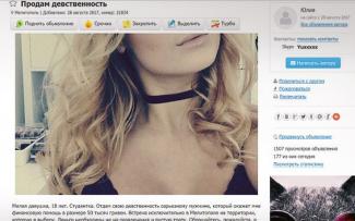 Το κείμενο της «αγγελίας» αναφέρει: «Αξιαγάπητο κορίτσι, ηλικίας 18 ετών, φοιτήτρια, θα δώσει την παρθενιά της σε έναν σοβαρό άνδρα ο οποίος θα βοηθήσει με 50.000 χρίβνια (περίπου 1.600 ευρώ). Η συνάντηση θα γίνει στην Μελιτοπόλ σε σημείο που θα διαλέξω εγώ».