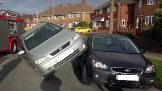 Δεν είναι εξάλλου και ό,τι πιο συνηθισμένο να βλέπεις ένα Ι.Χ. σκαρφαλωμένο πάνω σε ένα άλλο.