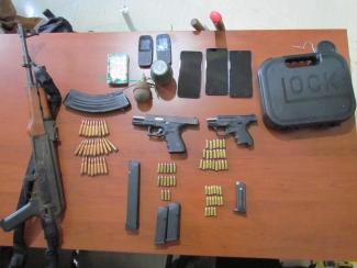 Συνολικά, καταφέραμε να εκριζώσουμε (837) δενδρύλλια κάνναβης και να κατασχέσουμε περισσότερα από (6,5) κιλά κάνναβης, καθώς και ιδιαίτερα βαρύ οπλισμό που έφεραν μαζί τους οι δράστες, αποτελούμενος από πολεμικό τυφέκιο, τύπου Kalashnikov, (2) πιστόλια και (2) χειροβομβίδες.