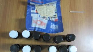 Μετά από πληροφορίες που δέχθηκαν για τη δράση του, οι άνδρες της Δίωξης Ναρκωτικών έκαναν έρευνα με εκπαιδευμένο σκύλο στην κατοικία του 48χρονου όπου ανακάλυψαν 12 πλαστικά φιαλίδια που περιείχαν υγρή μεθαδόνη συνολικού βάρους 672,7 γραμμαρίων και μια συσκευασία με μια άγνωστη καφέ ουσία βάρους 19,3 γραμμαρίων που εστάλη για χημική ανάλυση, ώστε να διαπιστωθεί αν εμπίπτει στο νόμο περί ναρκωτικών.