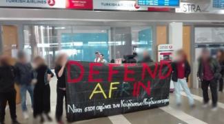 Συμβολική διαμαρτυρία στα γκισέ της Turkish Airlines στο αεροδρόμιο Μακεδονία στη Θεσσαλονίκη πραγματοποίησαν τη Δευτέρα αναρχικοί, σε ένδειξη αλληλεγγύης στο Αφρίν.