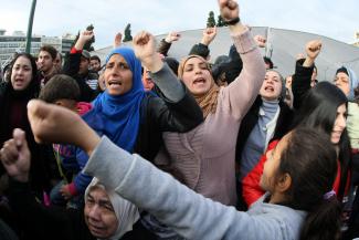 Τη λεωφόρο Κατεχάκη έκλεισαν σήμερα, για περίπου τέσσερις ώρες, Σύροι πρόσφυγες, οι οποίοι διαμαρτύρονταν γιατί, όπως ανέφεραν, δεν προχωράει γρήγορα η διαδικασία της υποβολής αιτήσεων για άσυλο.