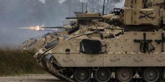 Οι στρατιώτες του 1ου Τάγματος Τεθωρακισμένων του Στρατού των ΗΠΑ, διεξάγουν δοκιμαστικές βολές στο Οχυρό Χουντ του Τέξας στο πλαίσιο ασκήσεων ετοιμότητας.