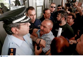 Κάποιοι προσπάθησαν να σπάσουν τον αστυνομικό κλοιό για να μπουν στα ενδότερα και άλλοι κατέρρευσαν πάνω στην ένταση. Τις φωνές στο σημείο διαδέχονταν οι κατάρες, με τους αστυνομικούς να προσπαθούν να ηρεμήσουν τα πνεύματα.
