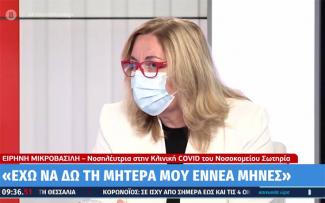 Τα παραπάνω δήλωσε η νοσηλεύτρια στην Κλινική COVID του Νοσοκομείου Σωτηρία, Ειρήνη Μικροβασίλη, στην εκπομπή «Κοινωνία Ώρα MEGA», τονίζοντας πως «Όποιος δε σέβεται τα μέτρα, δε σέβεται και το υγειονομικό προσωπικό που δίνει αγώνα».