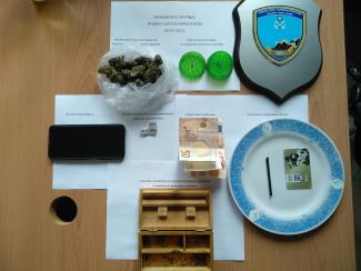 Εν συνεχεία, κατόπιν συναίνεσης του 31χρονου και υπόδειξης του, διενεργήθηκε νομότυπη κατ΄ οίκον έρευνα όπου ανευρέθη ένας (01) πλαστικός τρίφτης, με υπολείμματα ακατέργαστης κάνναβης, μη δυνάμενα να ζυγισθούν.