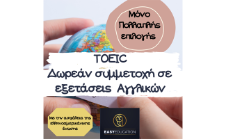 Τα Κέντρα Δια Βίου Μάθησης, Easy Education, στα πλαίσια της εταιρικής κοινωνικής ευθύνης, σε συνεργασία με την Ελληνοαμερικανική Ένωση, όντας άρρηκτα συνδεδεμένο με το σύνολο των εκπαιδευομένων πανελλαδικά και επιθυμώντας την περαιτέρω υποστήριξή τους, παρέχουν το δικαίωμα για δωρεάν εξ αποστάσεως προετοιμασία και για δωρεάν άμεση συμμετοχή σε εξετάσεις Αγγλικής Γλώσσας* με σκοπό να συμβάλλει καταλυτικά στην επιμόρφωση και πιστοποίηση όσο το δυνατόν περισσότερων ενδιαφερόμενων.
