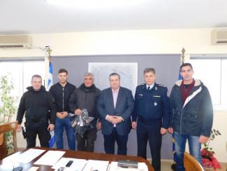Σε ένδειξη αναγνώρισης της κοινωνικής προσφοράς των αστυνομικών που υπηρετούν στην Ομάδα ΔΙ.ΑΣ της Διεύθυνσης Αστυνομίας Αιτωλίας, ο Δήμαρχος Ιεράς Πόλεως Μεσολογγίου Νίκος Καραπάνος προσέφερε σήμερα παρουσία του Διευθυντή Ιωάννη Νταλαχάνη 14 υπηρεσιακές φόρμες, ευχόμενος παράλληλα «καλή δύναμη και επιτυχία» στο δύσκολο έργο τους.