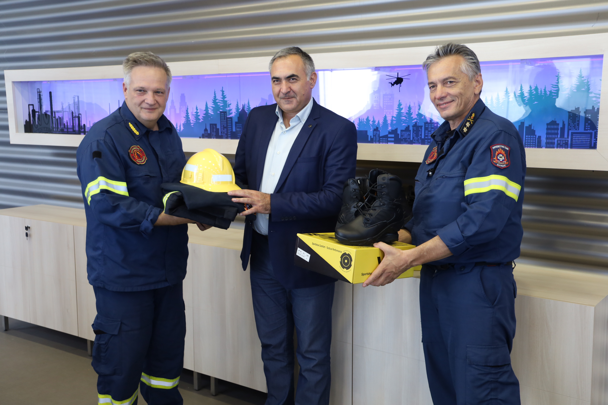 Η παραλαβή της δωρεάς πραγματοποιήθηκε στις εγκαταστάσεις του Αρχηγείου Πυροσβεστικού Σώματος, στο Μαρούσι Αττικής.