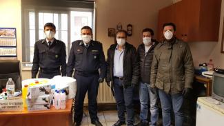 Το πρωί της Τετάρτης μέλη του Δ.Σ. του Εμπορικού Συλλόγου Εύοσμου Κορδελιού (ΕΜΣΕΚ) βρεθήκαν στο Α.Τ. Εύοσμου και παρέδωσαν υγειονομικό υλικό (γάντια, οινόπνευμα, αντισηπτικό, χλωρίνες και χαρτιά κουζίνας) και ειδή πρώτης ανάγκης για το τους αστυνομικούς.