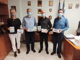 Εκτός από τις μάσκες, ο κ. Αντώνης Μαλλιάρης χάρισε στον κ. Λάζαρο Μαυρόπουλο δέκα ημερολόγια 2021 με θέμα «Η επανάσταση του 1821» και δέκα χάρτες σπιράλ, του πολεοδομικού συγκροτήματος Θεσσαλονίκης, των εκδόσεων Μαλλιάρης-Παιδεία.