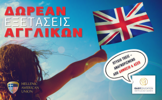 «Δηλώστε δωρεάν συμμετοχή σε πιστοποίηση της αγγλικής γλώσσας. Οι εξετάσεις είναι αναγνωρισμένες από τον ΑΣΕΠ και διεξάγονται από την Ελληνοαμερικανική Ένωση. Τα εξέταστρα καταβάλλονται μόνο σε περίπτωση επιτυχίας στις εξετάσεις και εφόσον επιθυμείτε την έκδοση του πιστοποιητικού!
