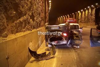 Η ανατροπή ενός οχήματος στην περιφερειακή οδό της Θεσσαλονίκης στάθηκε αφορμή για να σημειωθούν ακόμη δύο τροχαία ατυχήματα στα οποία ενεπλάκησαν 4 και 3 οχήματα.